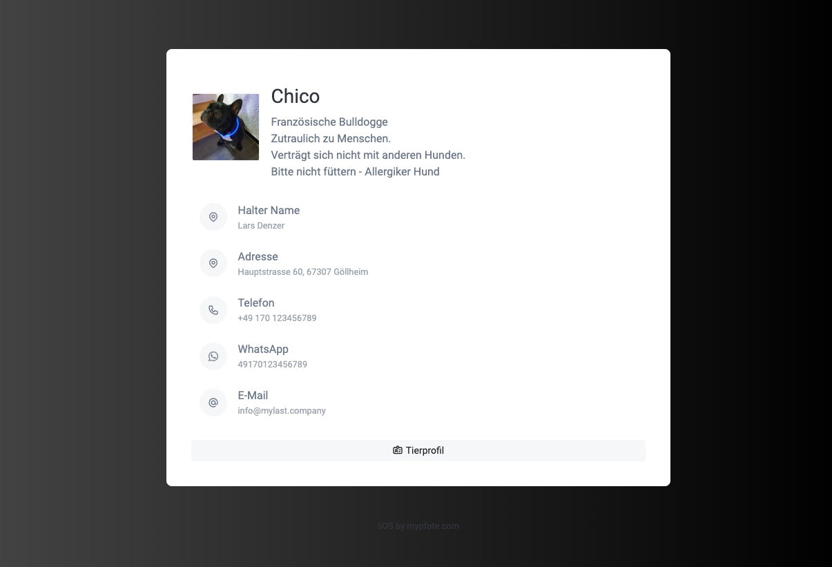 Aus diesem Grund hat mypfote.com das flexible SOS Tierprofil erschaffen: https://sos.mypfote.com
