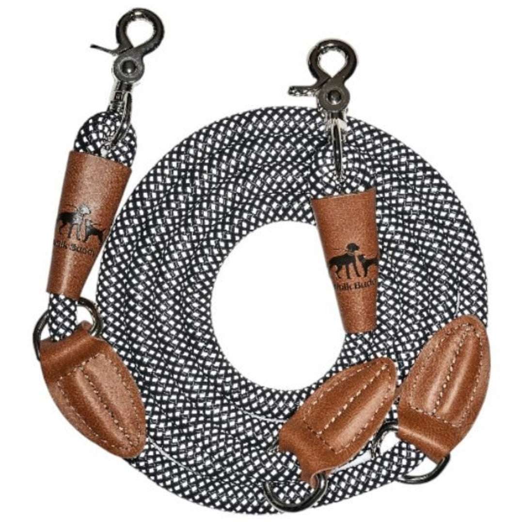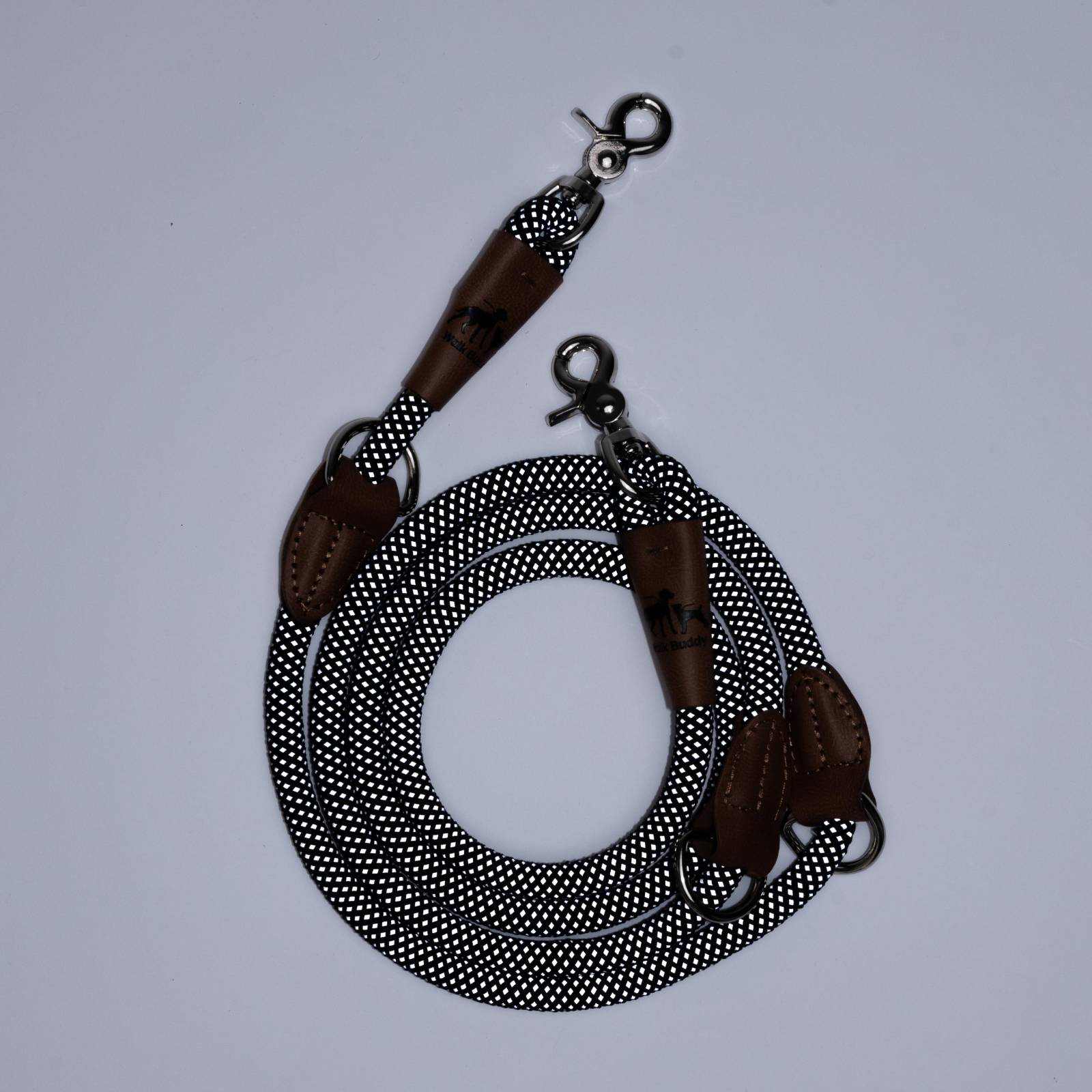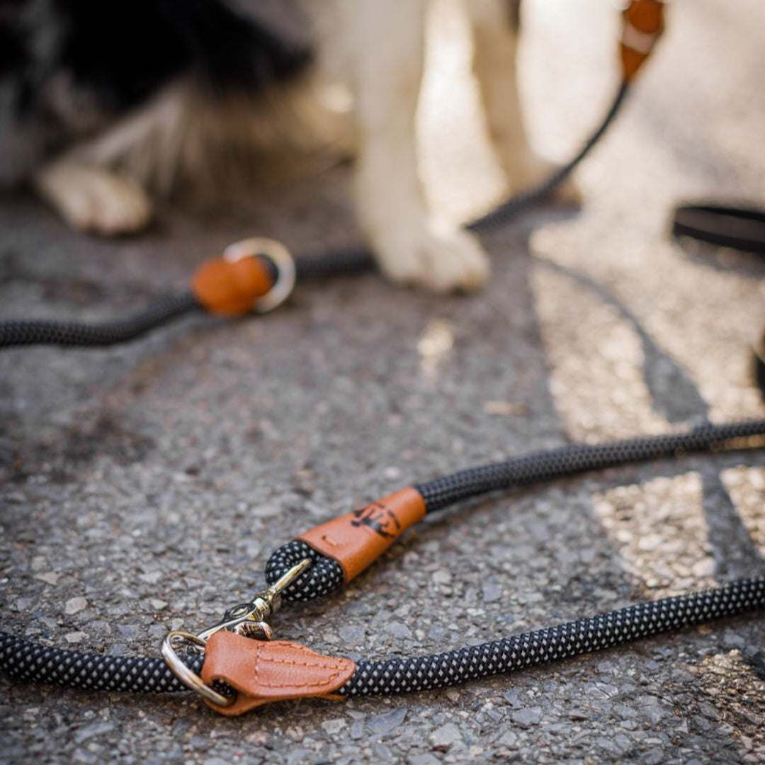 Dank des zweiten Karabiners kann die Leine verkürzt oder gekoppelt werden.
